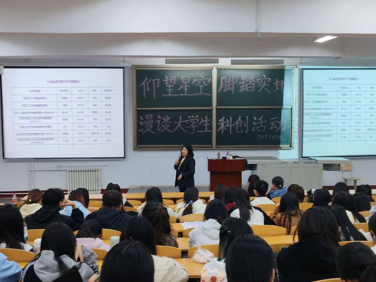 为了提升我院学生科创能力,活跃校园科创文化生活,进一步促进我院学风建设,我院于2024年11月12日晚在1C-102教室举办了“仰望星空,脚踏实地——漫谈大学生科创活动”专题讲座。本次活动特邀伟德国际1949薛金莲教授主讲。