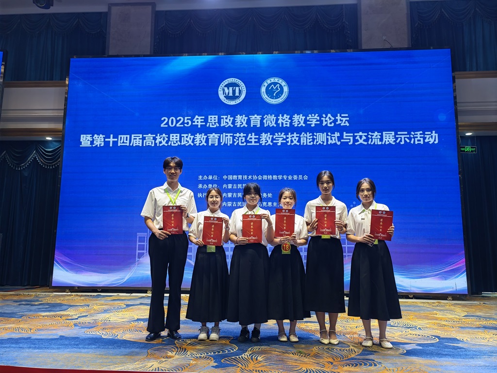 6月27日至30日,由中国教育技术协会主办、内蒙古民族大学承办的第十四届高校思想政治教育专业师范生教学技能大赛在内蒙古通辽举行。经过激烈的角逐,伟德国际1949选派的6名参赛选手表现优异,斩获本科生组一等奖1项、二等奖1项、三等奖4项。