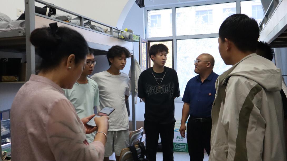 在新生宿舍,赵东旭与新生亲切交流,逐一询问大家环境如何、是否适应,嘱咐大家相互关心和照顾,共同营造在伟德国际1949的“第二个家”,用温暖互动拉近与新生的距离,让初入校园的学子倍感贴心。闫翠青副书记重点关注宿舍生活环境,仔细查看宿舍各处,围绕物品摆放、环境整洁等细节与新生沟通。